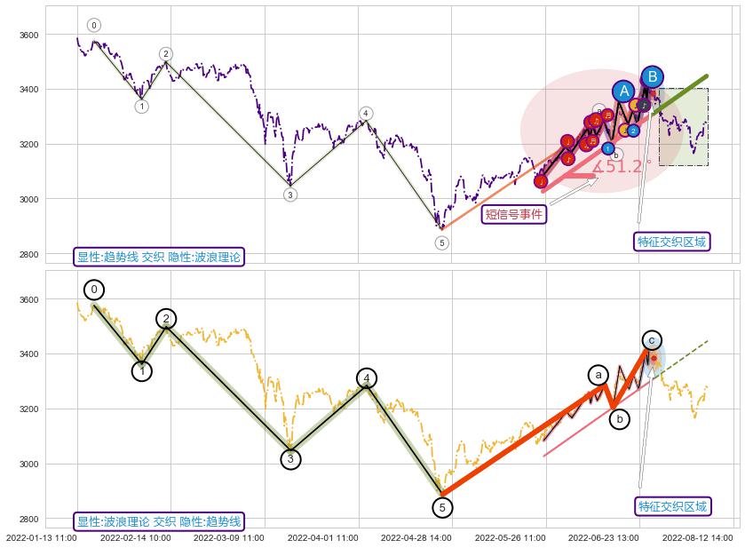 ➢ 趋势线属【短级别信号事件】波浪理论属【长级别信号事件】长短周期组合信号事件, 短长事件长度比21.36%
