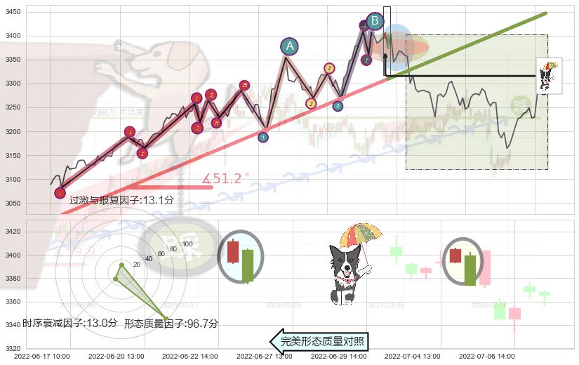 ➢ 2022-04-27 09:00-2022-07-15 13:00上升趋势存在反转[风险],其原上升趋势的支撑位(3379.70)已破位[强阻力信号],原上升趋势角度: 41.7˚