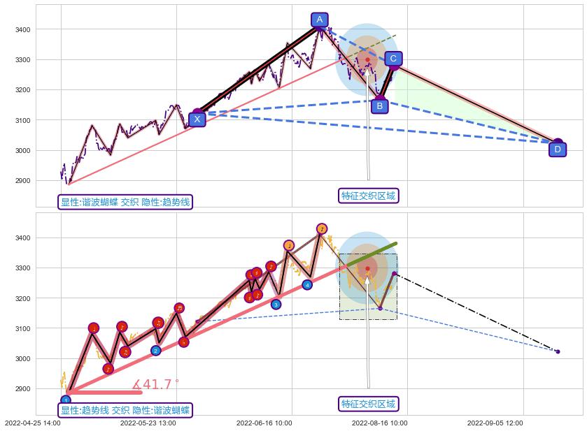 ➢ 未完成【蝴蝶】形态起点X: 03-03:09, 已到达C点: 08-03:14, 预测最终D点: 11-01:12, 共893交易小时