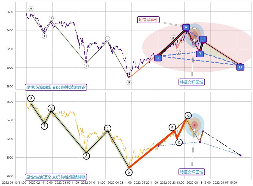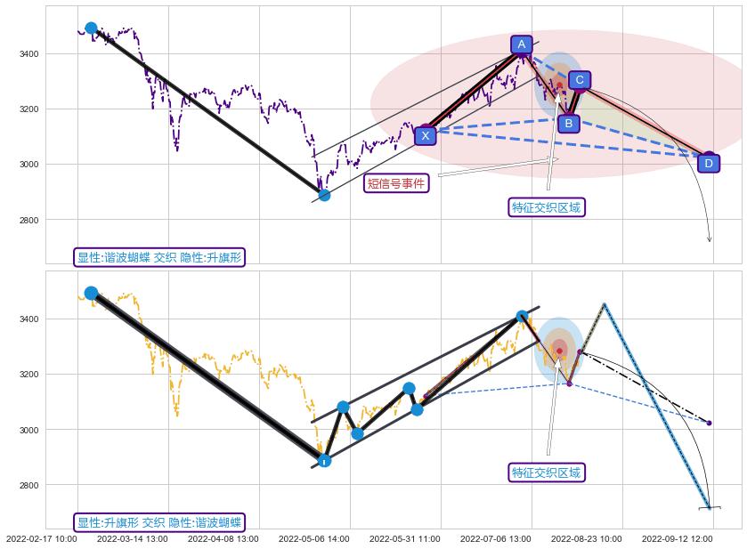 ➢ 谐波蝴蝶属【短级别信号事件】升旗形属【长级别信号事件】长短周期组合信号事件, 短长事件长度比35.02%