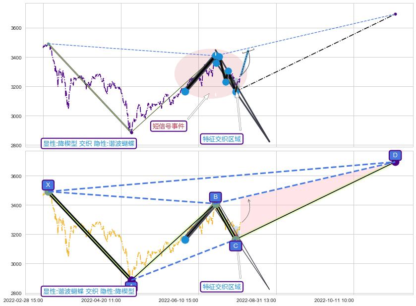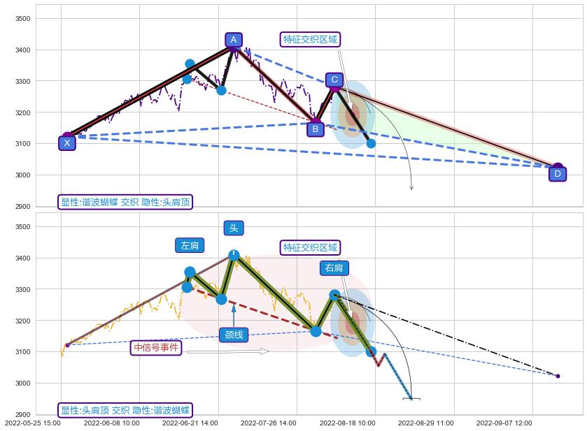 ➢ 头肩顶属【中级别信号事件】谐波蝴蝶属【长级别信号事件】中长周期组合信号事件,中长事件长度比58.96%