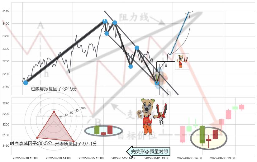 ➢ 🕰 价格走势在2022-08-10 14:00:00至2022-08-10 14:00:00期间形成锤头线(锤子线),残存影响值:6.07