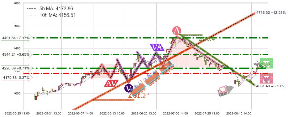 ♘ 阻力价格位4220.89,可信任强度88.61%,距离最后交易2022-08-12 14:00形成的收盘价格4191.20相差 +0.71%
