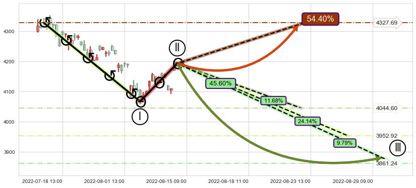 ➢ 循环浪继续向下【最高】位置(08-23:10, 4044.60),匹配聚类样本比例25.60%, 可能性概率11.68%