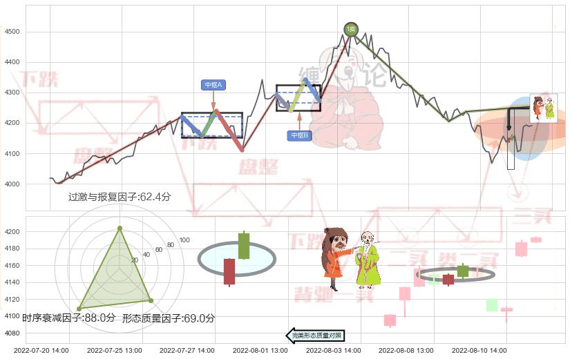 ➢ 🕰 价格走势在2022-08-05 14:00:00至2022-08-08 13:00:00期间形成下跌身怀六甲,残存影响值:-3.69