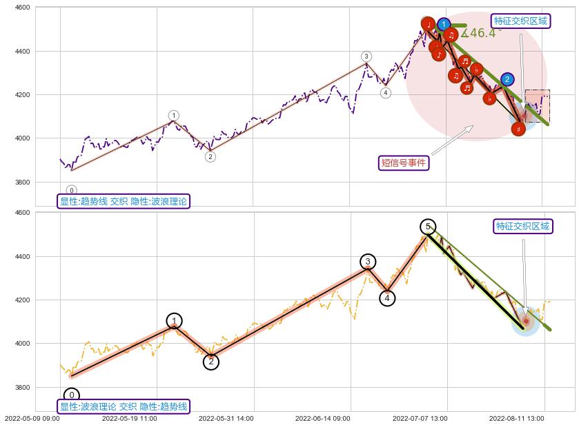 ➢ 趋势线属【短级别信号事件】波浪理论属【长级别信号事件】长短周期组合信号事件, 短长事件长度比22.65%