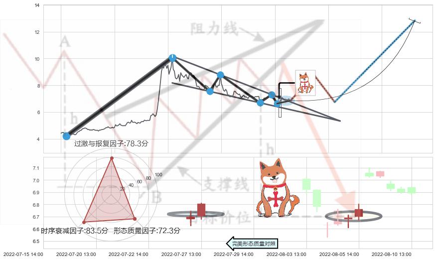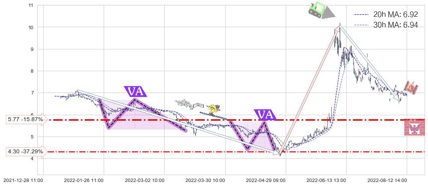 ♘ 支撑价格位5.77,可信任强度60.85%,距离最后交易2022-08-12 14:00形成的收盘价格6.86相差 -15.87%