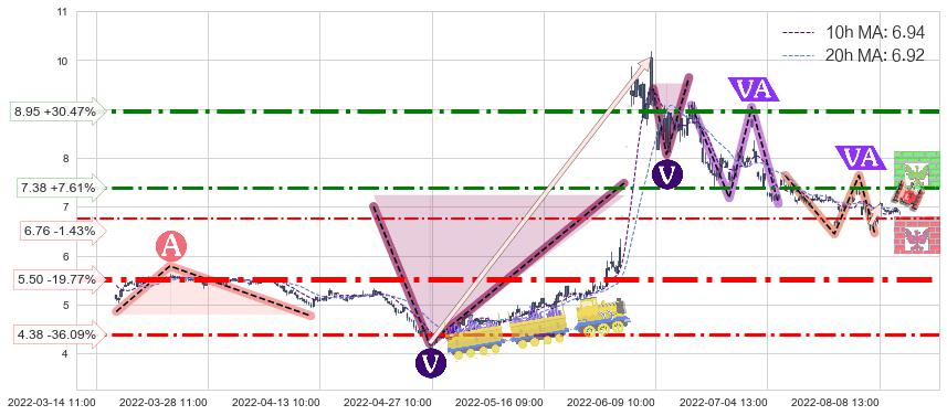 ♘ 阻力价格位7.38,可信任强度64.88%,距离最后交易2022-08-12 14:00形成的收盘价格6.86相差 +7.61%