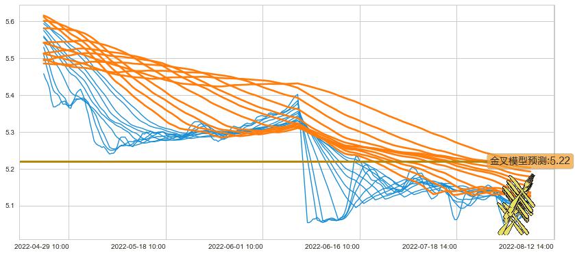 ➢ 10小时均线于(08-05 13:00: 5.06)形成【金叉】基于【金叉历史模型】预测金叉后最高波峰价格: 5.14, 金叉后最高价格5.17,已经上涨超出预测最高波峰价格, 预期回调