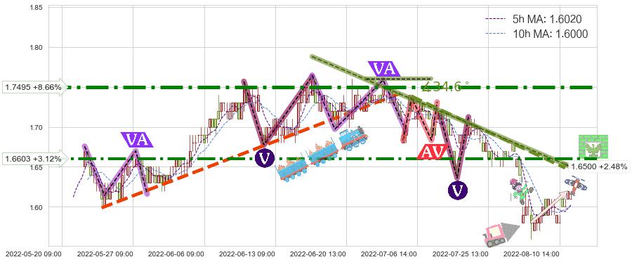 ➢ 预测:2022-08-16 12:00,【小幅反弹】稳定目前下跌趋势的前提下,预测价格:1.6348