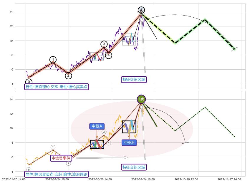 ➢ 智能识别已发生事件:缠论第一类卖点【卖❶】→(08-01:13: 13.75 )