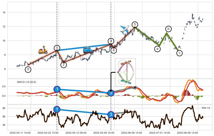 ➣ 第一, 三, 五浪上涨动能逐渐【增强变大】,趋势不断加固