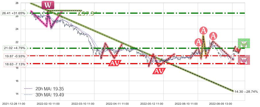 ♘ 阻力价格位26.41,可信任强度82.21%,距离最后交易2022-08-12 14:00形成的收盘价格20.06相差 +31.65%