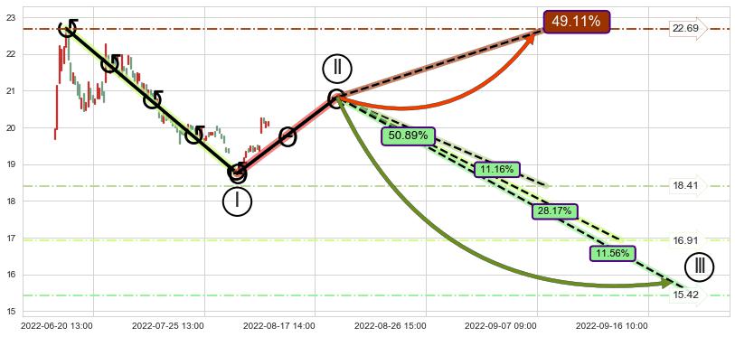 ➢ 循环浪继续向下【最低】位置(09-21:11, 15.42),匹配聚类样本比例22.72%, 可能性概率11.56%