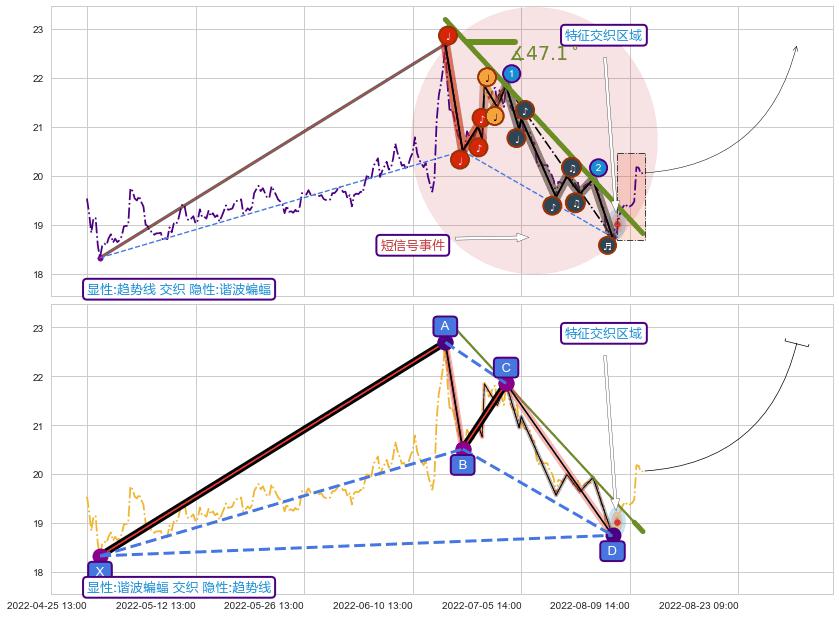 ➢ 趋势线属【短级别信号事件】谐波蝙蝠属【长级别信号事件】长短周期组合信号事件, 短长事件长度比34.60%