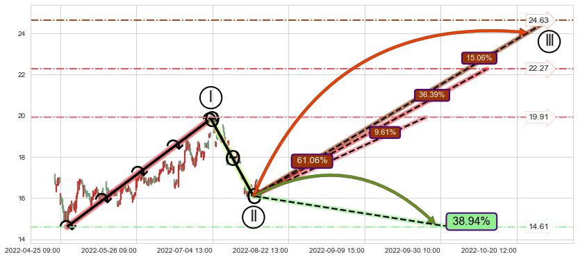 ➢ AI预测: 假定反转继续,第❸价格目标位置(08-23:15, 14.61)