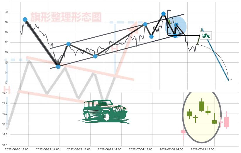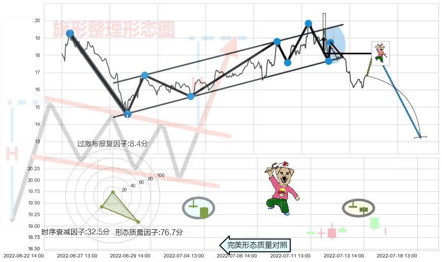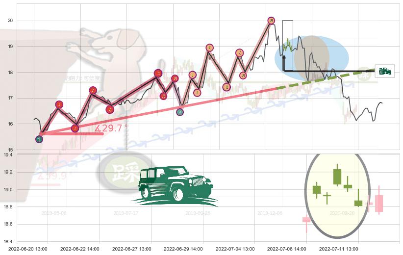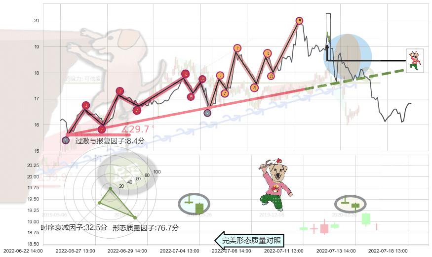 ➣ 2022-05-19 09:00-2022-07-05 13:00上升趋势存在反转[风险],其原上升趋势的支撑位(18.15)已破位[强阻力信号],原上升趋势角度: 29.7˚
