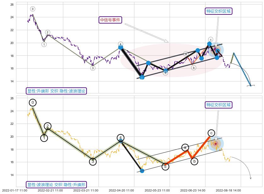 ➢ 看跌(高位倒锤头)流星线 + 波浪理论击穿破位C点继续下跌信号叠加后【目标达成率】中等,【看空】信号叠加【存续影响中等】