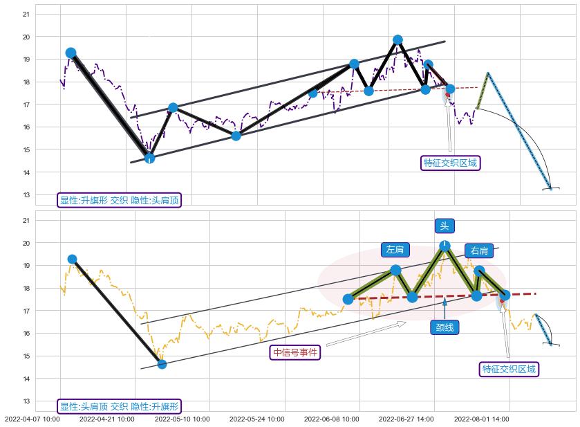 ➢ 头肩顶支撑破位转换阻力下跌 🔜 升旗形支撑破位转换阻力下跌 综合量化分数:33.63 【强烈看空】