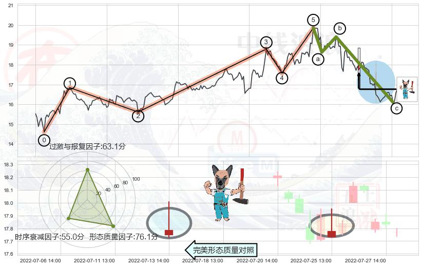 ➢ 看跌(高位倒锤头)流星线 🔜 波浪理论击穿破位C点继续下跌 综合量化分数:47.59 【中性】