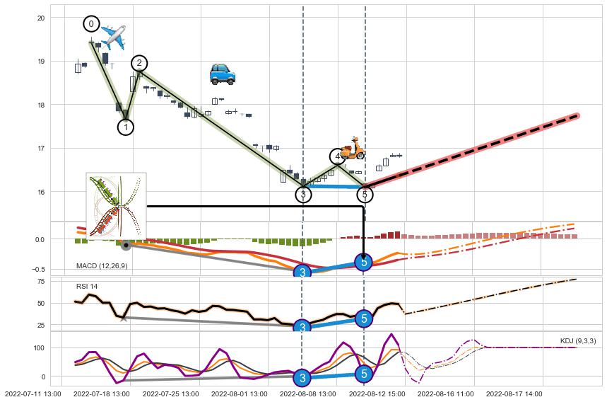 ➣ MACD, RSI, KDJ走势都出现【常规背离】反转信号增强