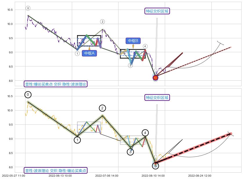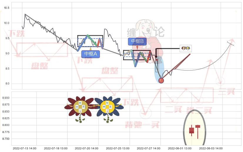 ➣ 缠论买卖点:下降缠中枢AB形成后猜想拐点1买已到达,猜想后续持续拉升(均值回复)