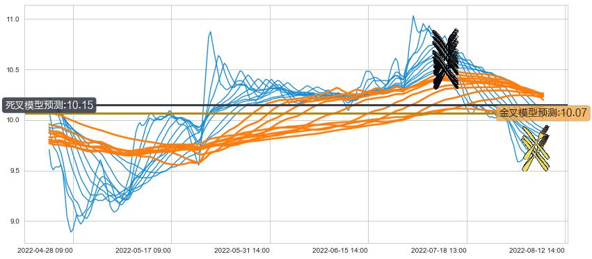 ➣ 40小时均线于(07-08 14:00: 10.62)形成【死叉】基于【死叉历史模型】预测死叉后最低波谷价格: 10.20, 死叉后最低价格9.50,已经下跌超出预测最低波谷价格, 预期反弹