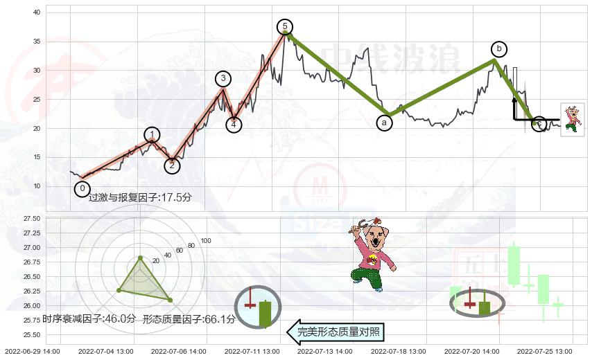➢ 🕰 价格走势在2022-07-26 13:00:00至2022-07-26 14:00:00期间形成底部尽头线(上山虎),残存影响值:6.42