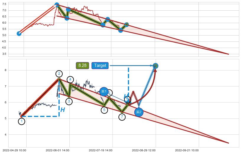 ➣ 【仅预测突破】最后价格:5.83与预测突破价格:5.96→【空间临近】后续最小【整理】第一目标价格→(08-29:11: 8.28 )