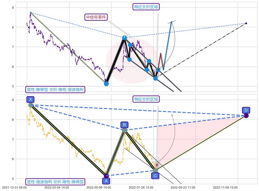 从2022-03-23 13:00至2022-04-27 09:00,共包含113个小时,阶段股价下跌-22.67%,阶段股价变动位移路程比: 1 : 2