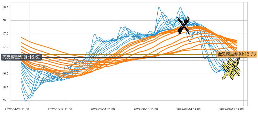 ➢ 45小时均线于(08-11 13:00: 16.32)形成【金叉】基于【金叉历史模型】预测金叉后最高波峰价格: 17.04, 金叉后最高价格16.39,尚未达到预测最高波峰价格, 预期继续上涨
