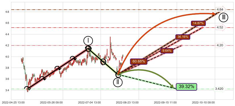 ➢ 循环浪继续向上【最低】位置(09-19:12, 4.20),匹配聚类样本比例15.89%, 可能性概率9.64%