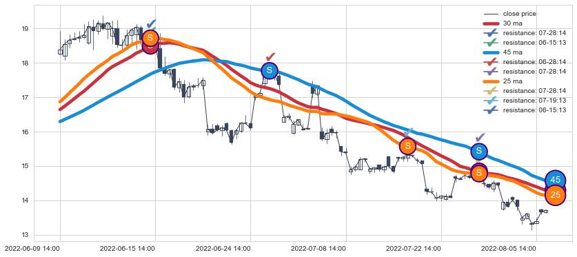➣ 30小时均线于(08-08 14:00: 14.29)形成【金叉】基于【金叉历史模型】预测金叉后最高波峰价格: 15.09, 金叉后最高价格14.90,尚未达到预测最高波峰价格, 预期继续上涨