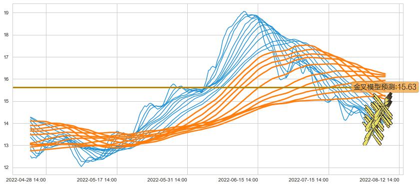 ➢ 45小时均线于(08-11 14:00: 14.46)形成【金叉】基于【金叉历史模型】预测金叉后最高波峰价格: 15.89, 金叉后最高价格14.90,尚未达到预测最高波峰价格, 预期继续上涨