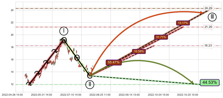 ➣ 循环浪继续向上【平均值】位置(10-13:14, 21.26),匹配聚类样本比例57.18%, 可能性概率31.71%