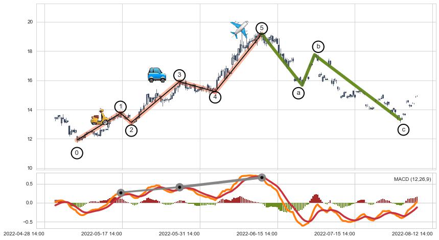 ➣ 波浪理论:猜想达到c点后小回调终止反转上涨 → 上涨 → 【拐点】临近 → 阶段均值回复结束后继续大周期趋势跟踪