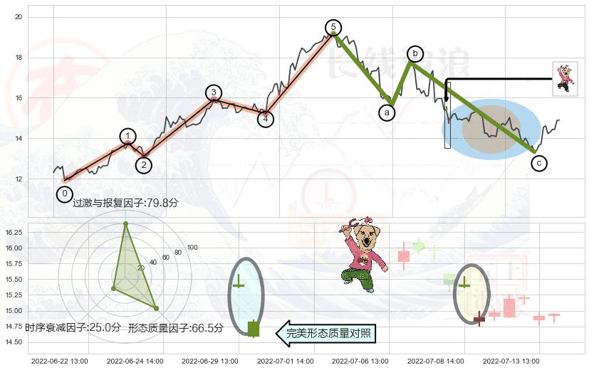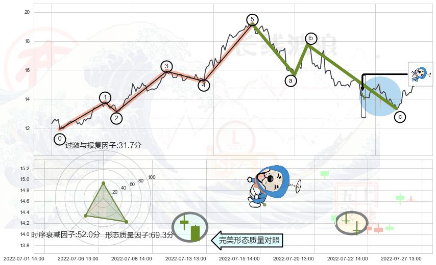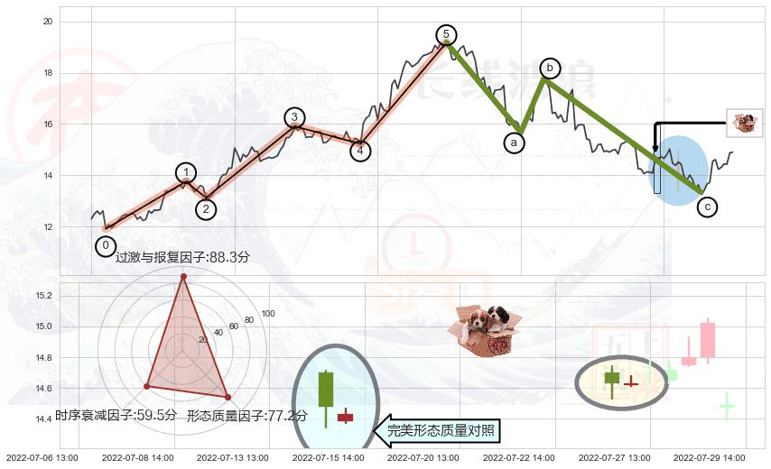 ➢ 🕰 价格走势在2022-07-26 13:00:00至2022-07-26 14:00:00期间形成底部尽头线(上山虎),残存影响值:6.16