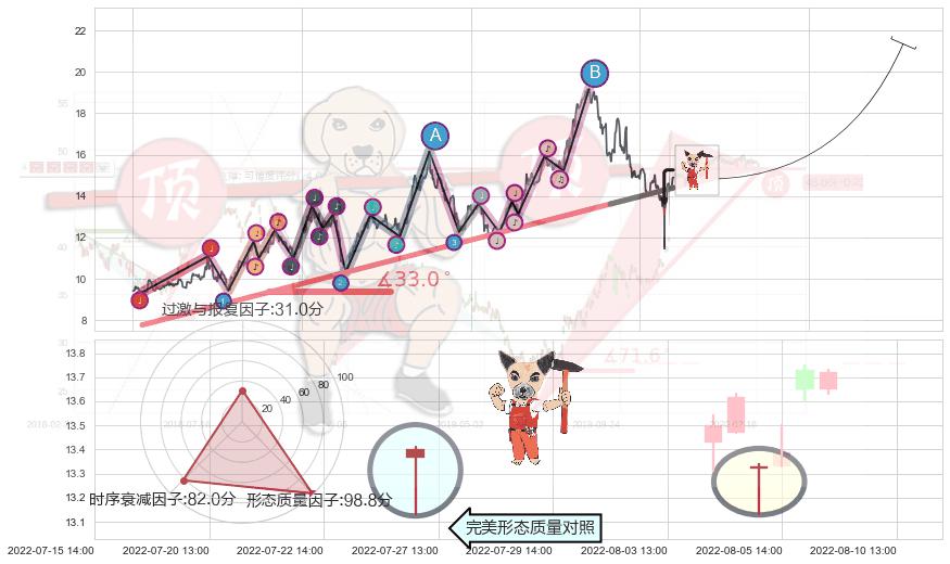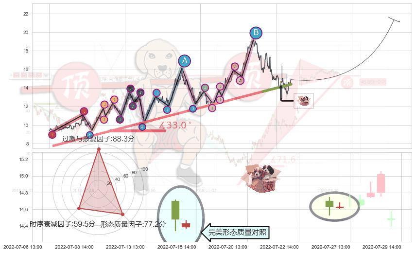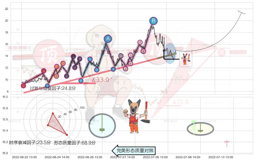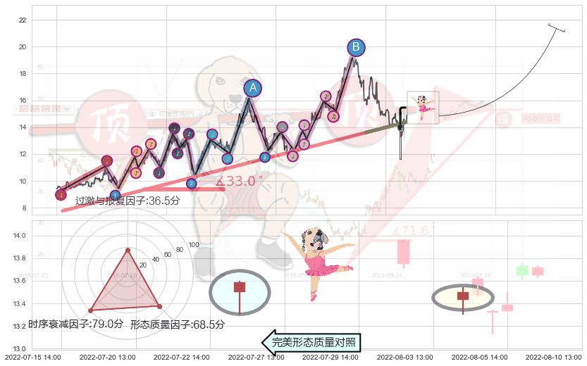 从2021-12-30 13:00至2022-06-22 13:00,共包含555个小时,阶段股价上涨62.71%,阶段股价变动位移路程比: 1 : 10,上涨趋势角度: 33.0