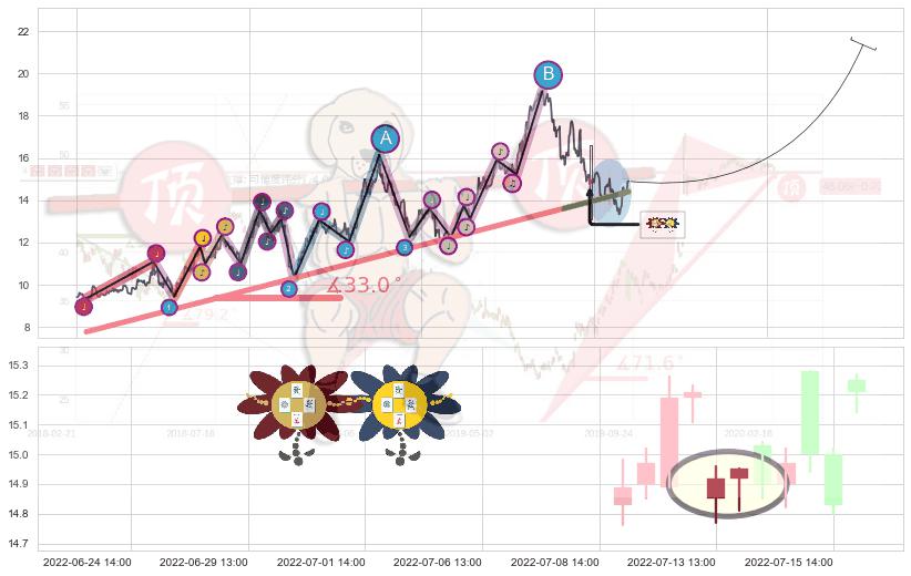 ♘ 阻力价格位15.84,可信任强度46.00%,距离最后交易2022-08-12 14:00形成的收盘价格14.90相差 +6.30%