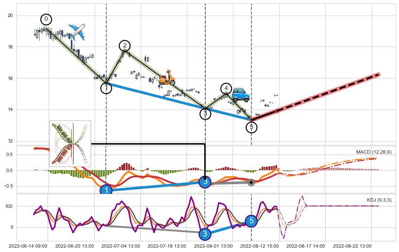 ➣ 波浪理论:猜想达到c点后小回调终止反转上涨 → 上涨 → 【拐点】临近 → 阶段均值回复结束后继续大周期趋势跟踪