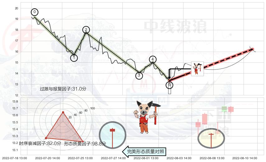 从2022-08-05 13:00至2022-08-12 14:00,共包含12个小时,阶段股价上涨11.41%,阶段股价变动位移路程比: 1 : 1.5