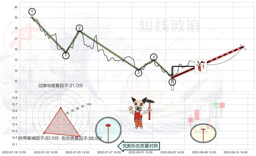 ➢ 🕰 价格走势在2022-08-05 13:00:00至2022-08-05 13:00:00期间形成锤头线(锤子线),残存影响值:5.50