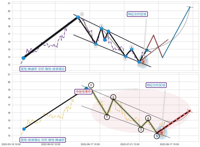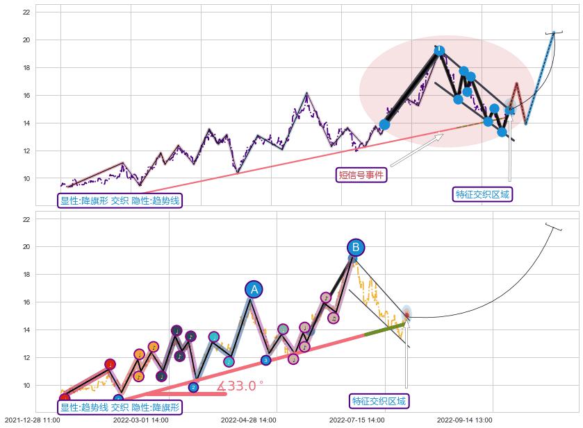 从2022-06-22 14:00至2022-07-05 14:00,共包含19个小时,阶段股价上涨10.78%,阶段股价变动位移路程比: 1 : 3