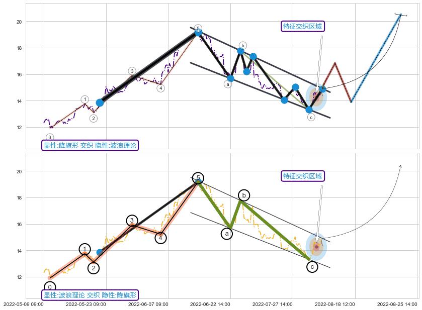 ➣ ['回调abc识别为: 【锯齿型调整浪】 ', '锯齿型:子浪535结构 ⓑ点振幅较小,ⓒ点继续发力远超ⓐ点结束位置']