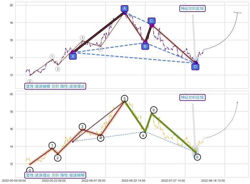 ➢ 谐波蝴蝶与波浪理论信号事件周期长度级别相同,同周期信号事件