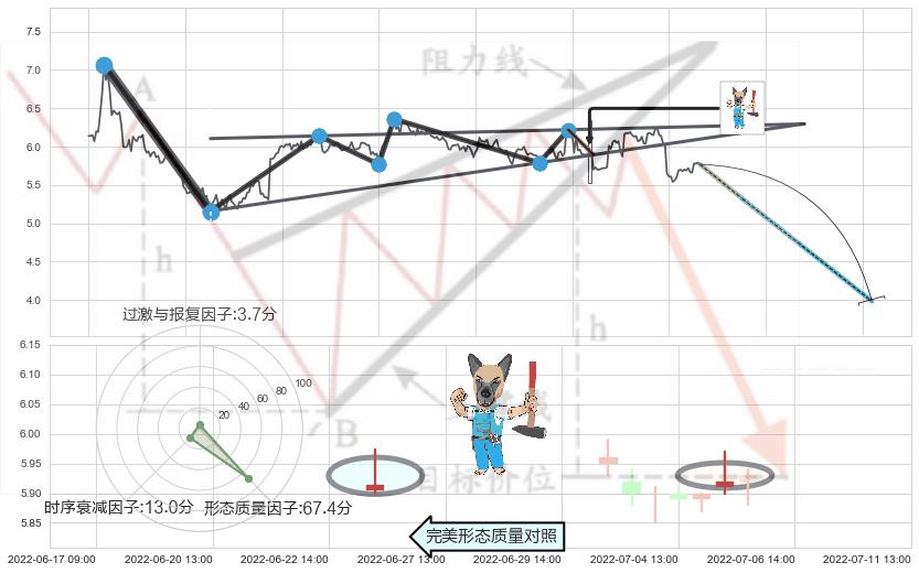 ➢ 🕰 价格走势在2022-07-05 14:00:00至2022-07-06 13:00:00期间形成下跌螺旋桨,残存影响值:-2.69