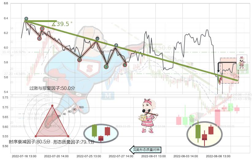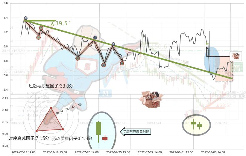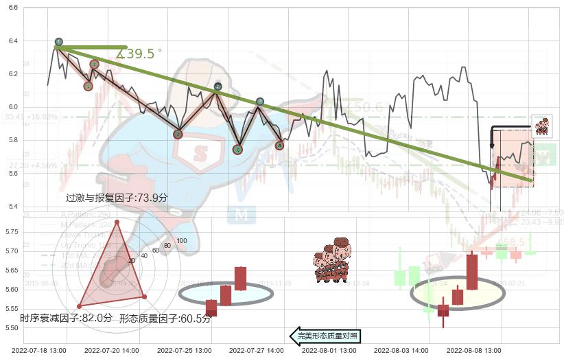 ➣ 2022-05-26 11:00-2022-06-27 13:00下跌趋势存在反转上涨[机会],其原下跌趋势的阻力位(5.56)已被突破[强支撑信号],原下跌趋势角度: 39.5˚