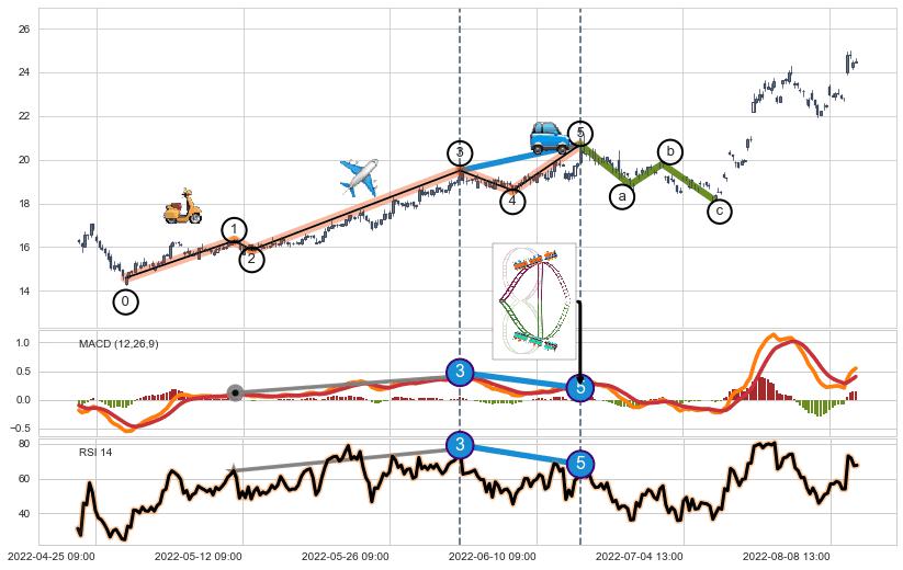➣ ['回调abc识别为: 【锯齿型调整浪】 ', '锯齿型:子浪535结构 ⓑ点振幅较小,ⓒ点继续发力远超ⓐ点结束位置']