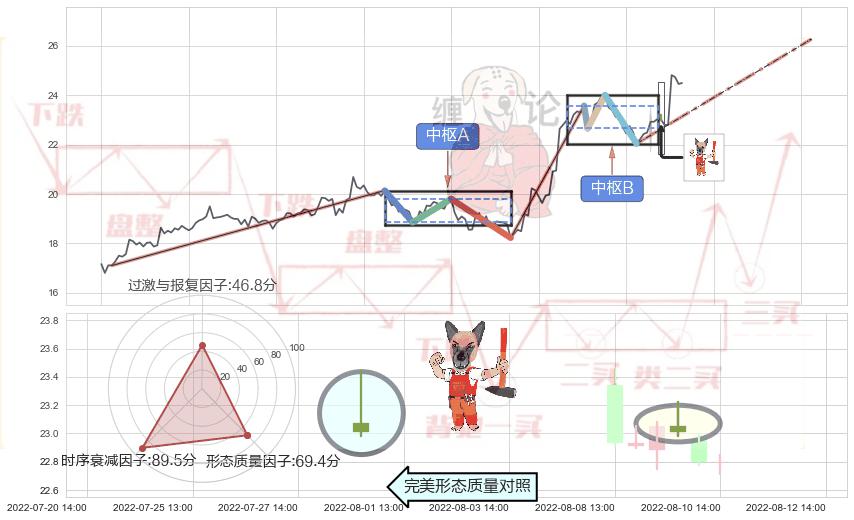从2022-04-27 09:00至2022-08-12 14:00,共包含250个小时,阶段股价上涨54.59%,阶段股价变动位移路程比: 1 : 4,上涨趋势角度: 24.0