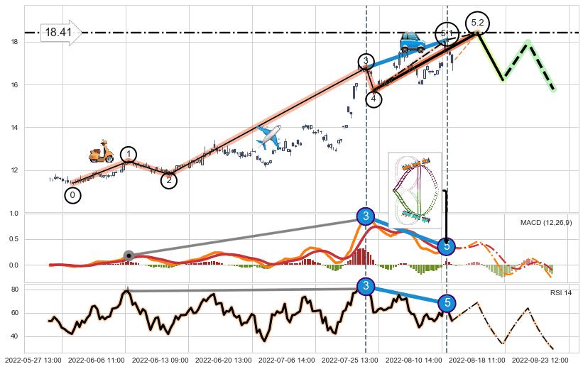 ➣ 5.1: 预测当前第5浪位置(08-11:14, 18.09),仍然有上升空间